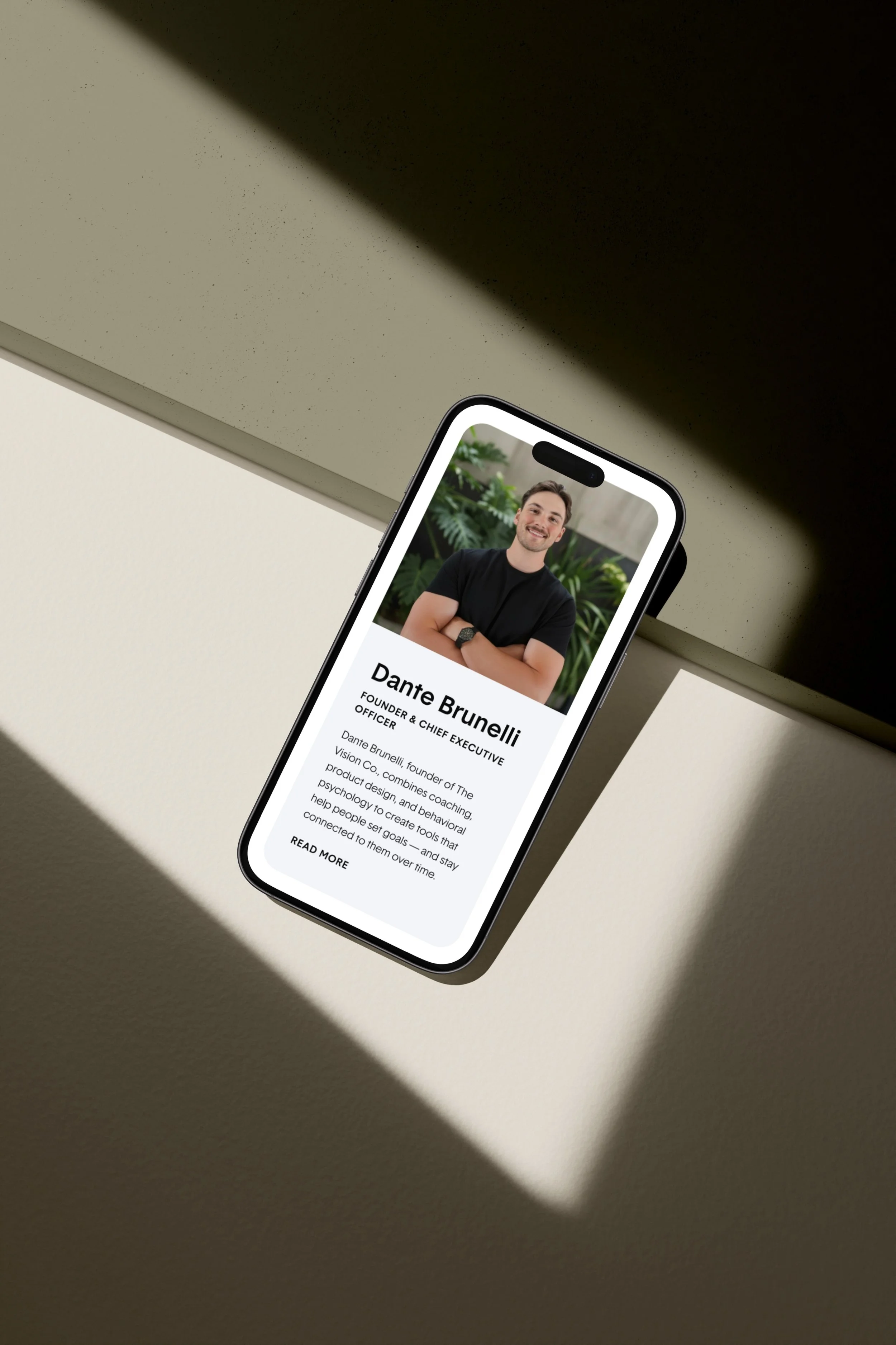 The Vision Co. is an AI platform supporting goal setting, clarity, and accountability through personalized, adaptive intelligence and products.